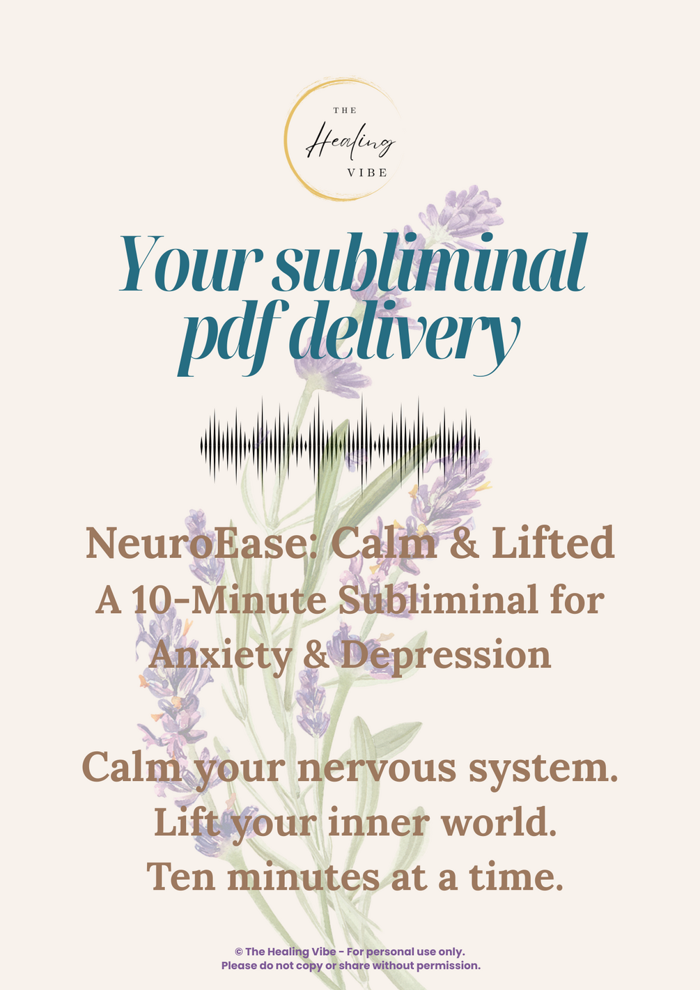 A 10-minute subliminal audio designed to support anxiety relief, low mood, and nervous system regulation. Infused with theta waves and binaural beats, this recording gently supports emotional well-being and inner steadiness.
